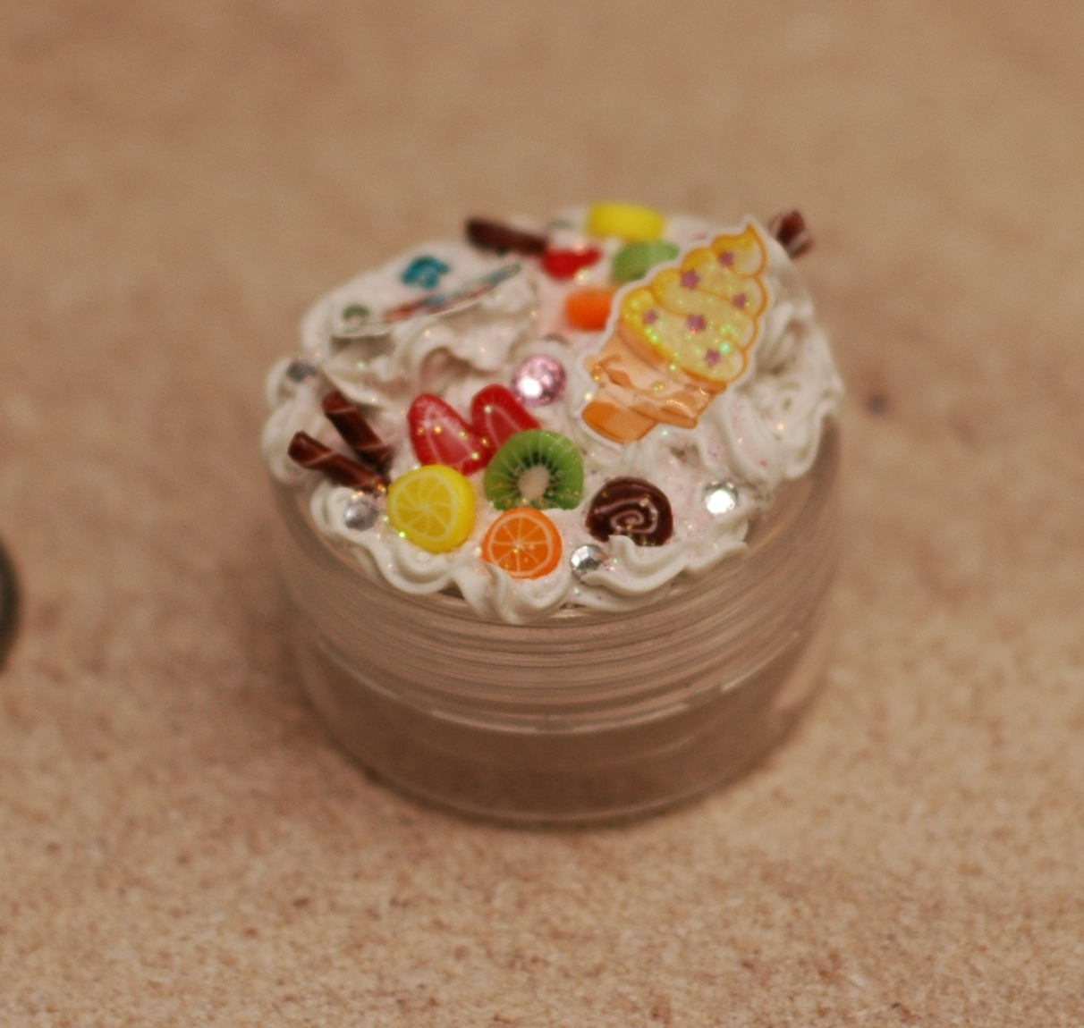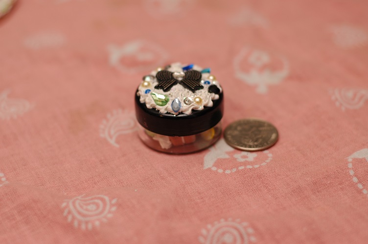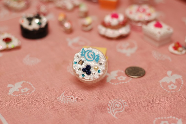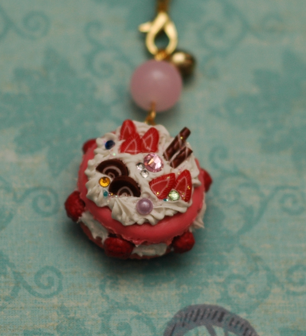 Here we have tiny pink macaron with some embellishments on the top. It’s so cute, that I even put one on my cell phone (with the rest of the charm family :P)